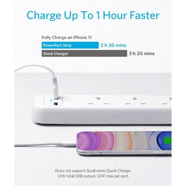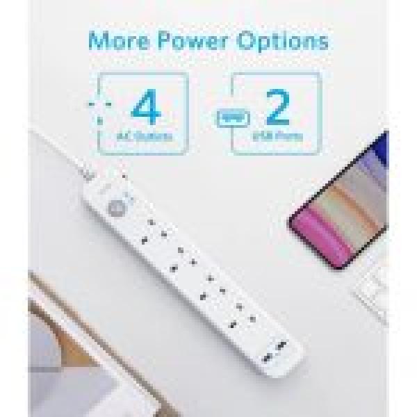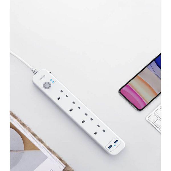 انكر تمديد الطاقة 6 في 1 يو اس بي قطاع الطاقة - أبيض