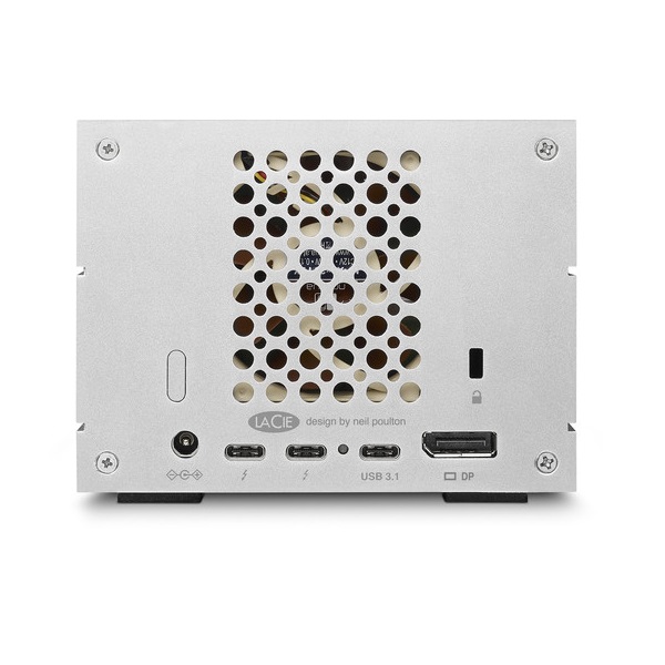 سعة 16 تيرابايت (هارد درايف 2 × 8 تيرا بايت) 2 منفذ Thunderbolt 3 | 1 x USB 3.0 Type-C 1 منفذ USB 3.0 من النوع A | 1 × ديسبلايبورت كومباكت فلاش وفتحات بطاقة SD يدعم RAID 0 و 1 و JBOD تم تكوينه مسبقًا كـ HFS + RAID 0 جهاز تحكم RAID يشمل خدمات استعادة البيانات لمدة 5 سنوات ما يصل إلى 27 واط من الطاقة لشحن الكمبيوتر المحمول متوافق مع Windows و Mac