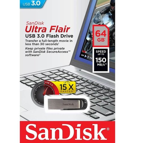 SanDisk 64GB Ultra Flair, 150MB/s, USB 3.0, USB Flash Memory, Flash Drive, UltraFlair