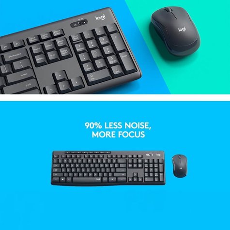 لوجيتك MK295 سايلنت كومبو ماوس لاسلكي ولوحة مفاتيح ضوضاء أقل - جرافيت