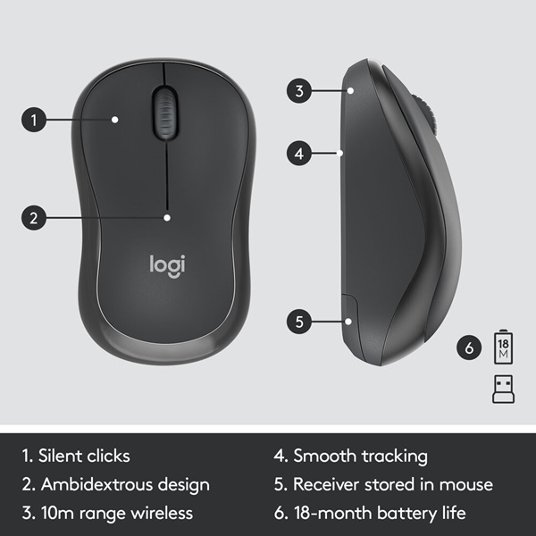 شكل مريح وقابل للحمل، نقر وتوجيه دقيق وهادئ على معظم الأسطح بفضل تقنية SilentTouch التي تمنحك تجربة خالية من الضوضاء.