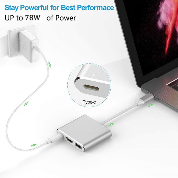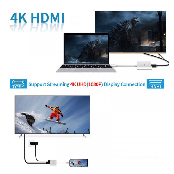 USB Type-C to HDMI Adapter 4K USB C Charging Port USB 3.0 Port