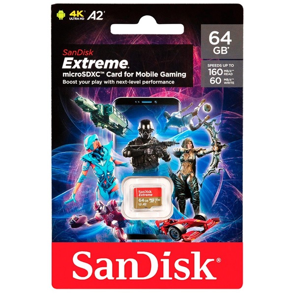 - بطاقة ذاكرة سانديسك اكستريم مايكرو اس دي 64 جيجا للألعاب المحمولة ، 160 ميجا بايت / ثانية