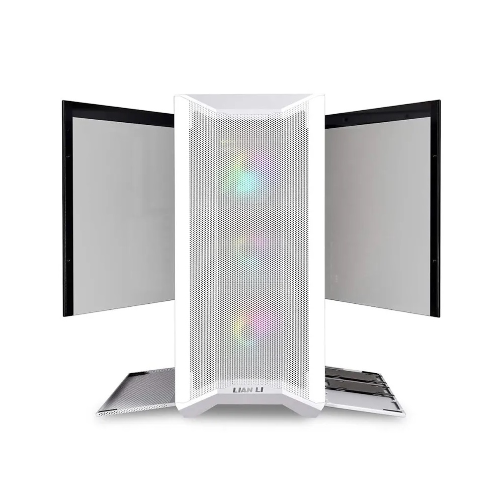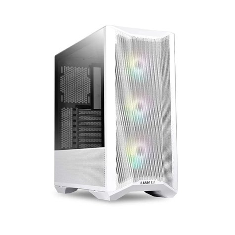 - LIAN LI LANCOOL II RGB Mesh C حافظة كمبيوتر برجية متوسطة (بيضاء ثلجية) ، 3 مراوح