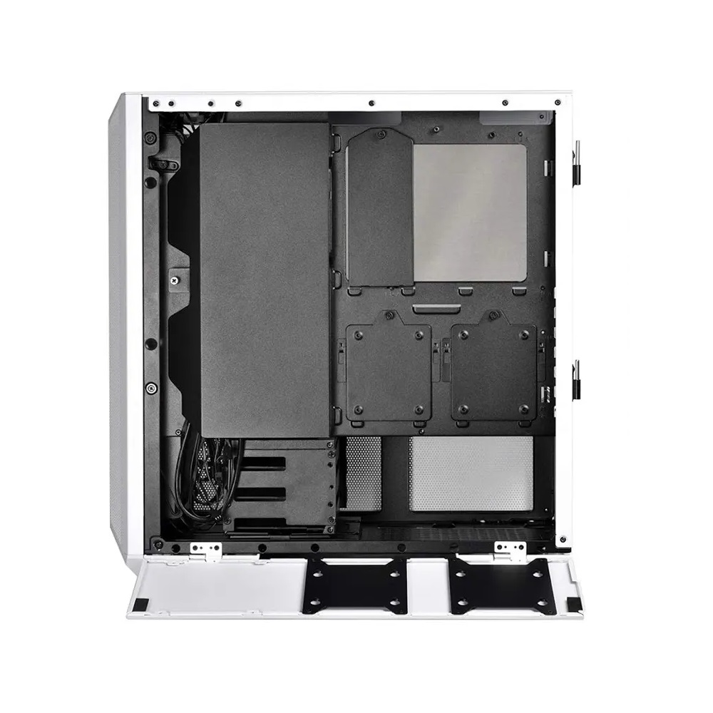 تتميز المساحة بين الحجرة العلوية والسفلية الآن بغطاء غطاء PSU قابلين للإزالة لإيواء إما 2 x 2.5 "SSDs أو يمكن إزالتها لتناسب مراوح 2 x 120mm.