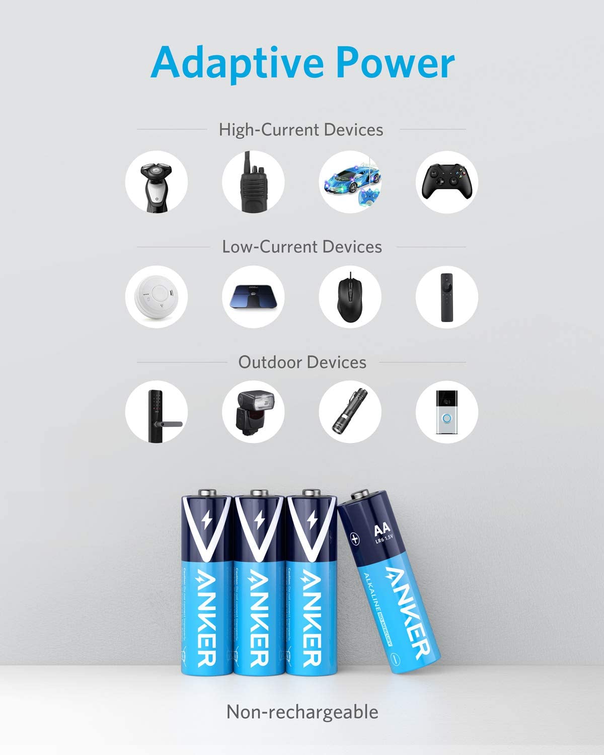 - بطاريات أنكر القلوية AA (8 عبوات)