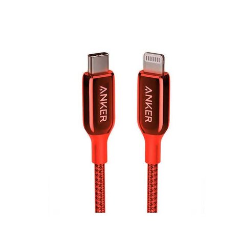 أنكر باور لاين + III USB-C إلى Lightning (0.9 م / 3 قدم) - أحمر