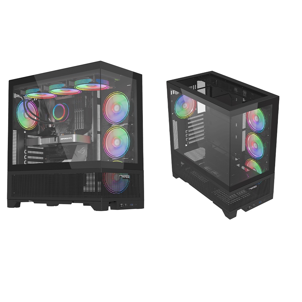 تمامًا لا يعرض هذا المكونات عالية الأداء فحسب، بل يضيف أيضًا لمسة من الفخامة إلى إعدادك. تجمع اللوحة الأمامية المزينة بالزجاج المقسى والشبكة بين الجماليات وتدفق الهواء الأمثل لتحقيق التوازن المثالي.