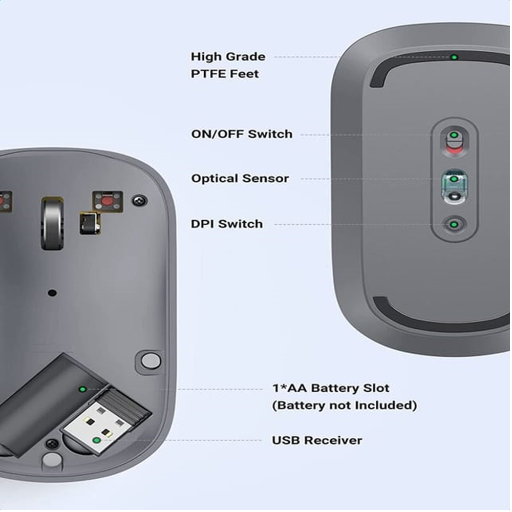 - يوجرين MU001 ماوس لاسلكي 2.4 جيجا صامت – رمادي