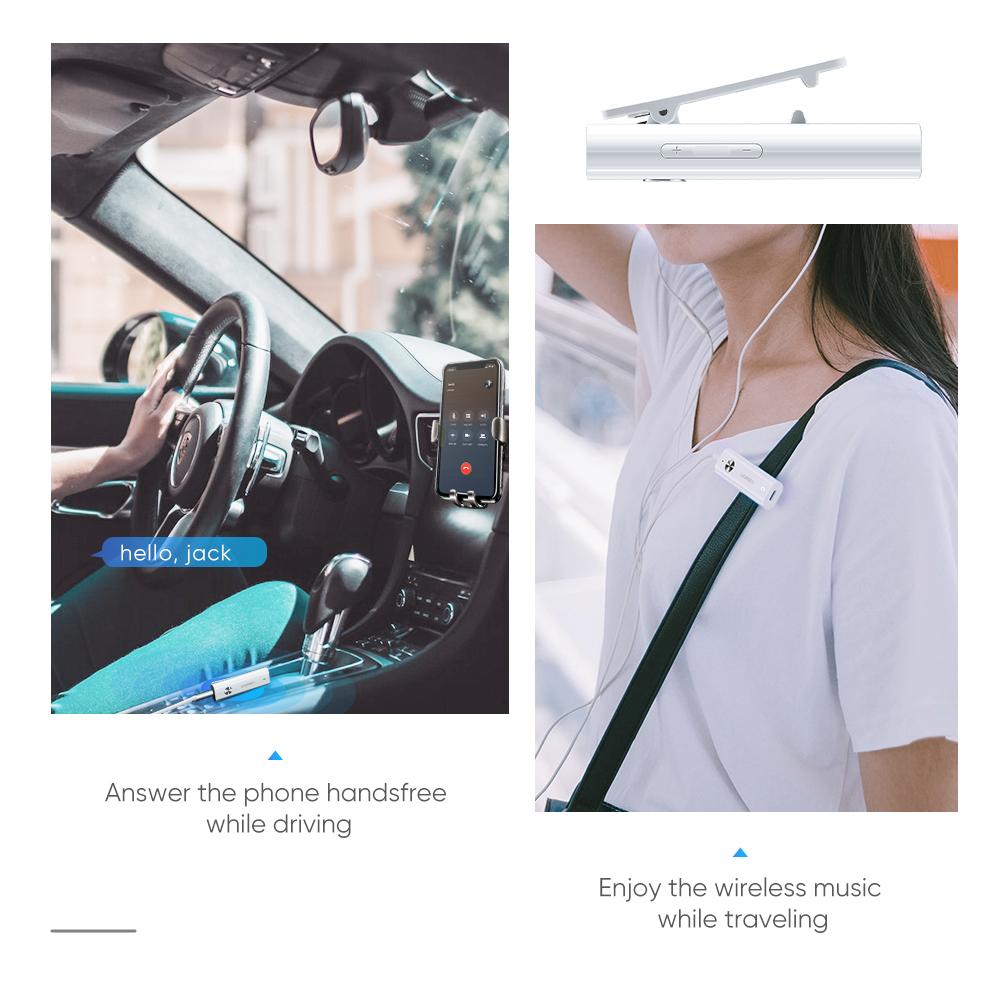 تم تصميم محول Bluetooth 5.0 هذا لنظام ستيريو للسيارة / المنزل بدون Bluetooth مع منفذ aux 3.5 ملم. 10 م انتقال خالي من العوائق. يسمح المشبك الخلفي لهذا المحول بالبقاء أينما تريد. استقرار إرسال واستقبال إشارات البلوتوث. شريحة CSR لنقل أكثر استقرارًا وأسرع واستهلاكًا أقل للطاقة.