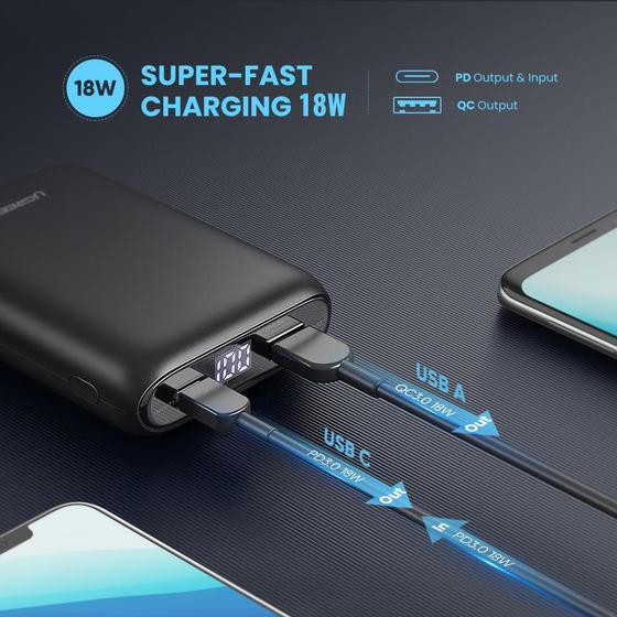 10000mAh High Capacity PD QC Fast Charging & Recharging Charge 2 Devices Simultanously