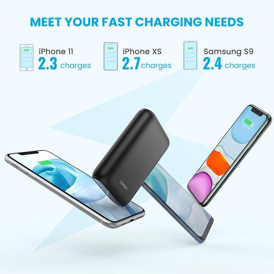 بطارية خارجية صغيرة بسعة 10000 مللي أمبير في الساعة: توفر السعة العالية 10000 مللي أمبير في الساعة طاقة كافية للاستمرار في الاستخدام اليومي ، على سبيل المثال ، يوفر باور بانك هذا شحن 2.4 مرة لهاتف آيفون 11. تصميم مدمج وخفيف الوزن يجعل من السهل حمله ونقله حتى في جيبك.
