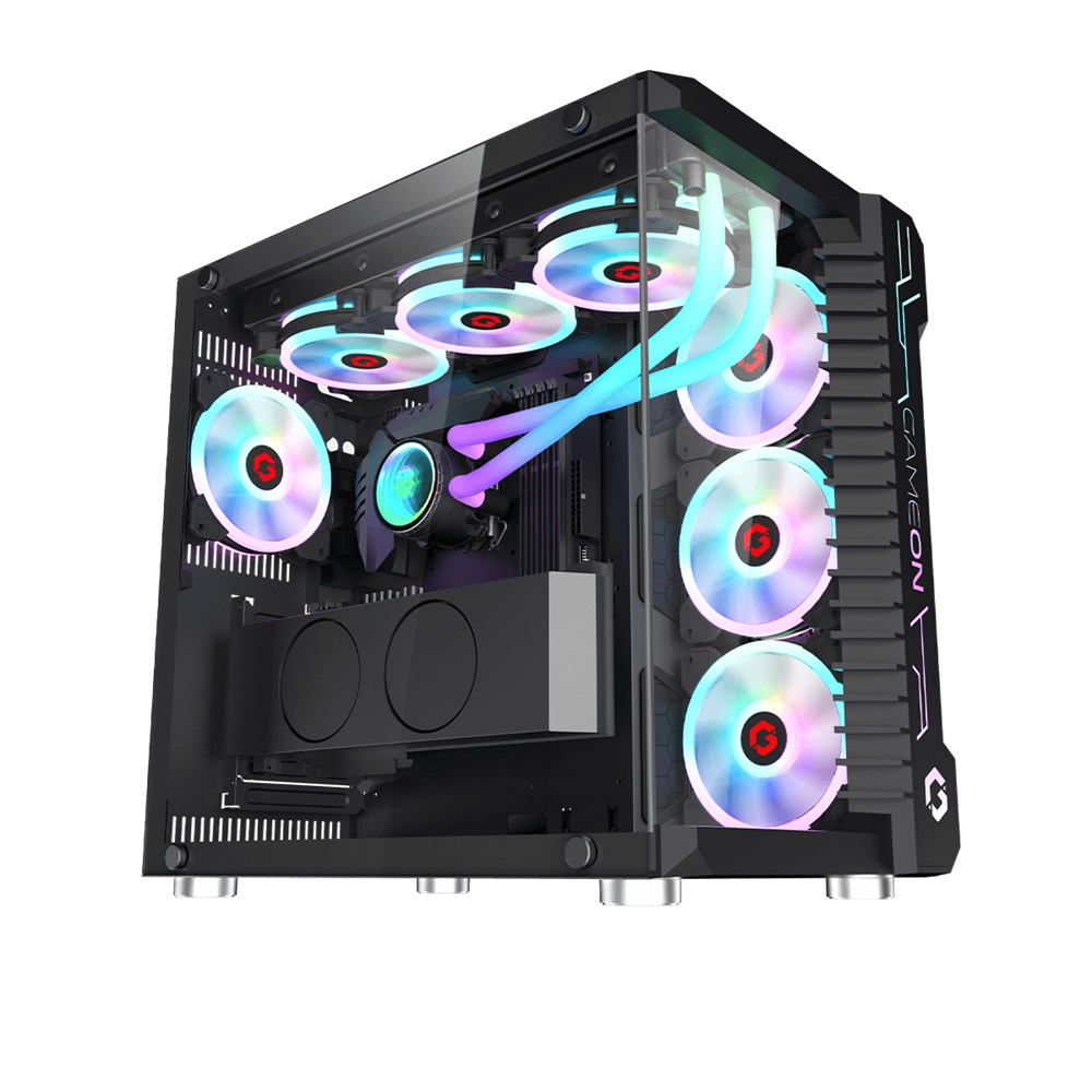 - حقيبة الألعاب GameOn Emperor Midnight III Series Mid Tower – أسود (7 مراوح)