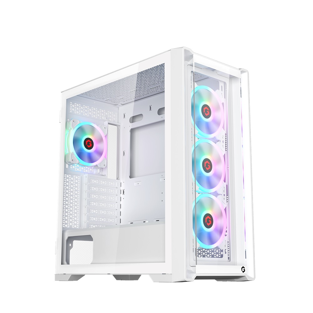 علبة كمبيوتر GameOn Vortex Arctic Series Mid Tower للألعاب – بيضاء (4 مراوح)