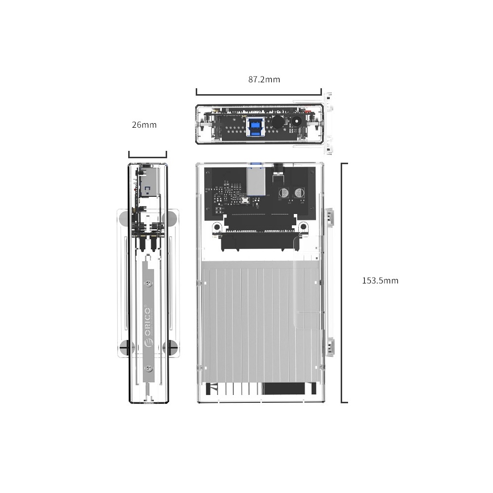 - علبة Orico 2259U3 USB 3.0 شفافة مزدوجة الفتحات لمحرك الأقراص الصلبة/SSD SATA مقاس 2.5 بوصة