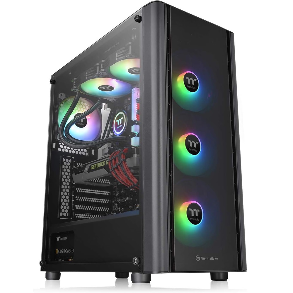 - علبة Thermaltake V250 متوسطة الحجم من الزجاج المقسّى ARGB (أسود) مع 4 مراوح