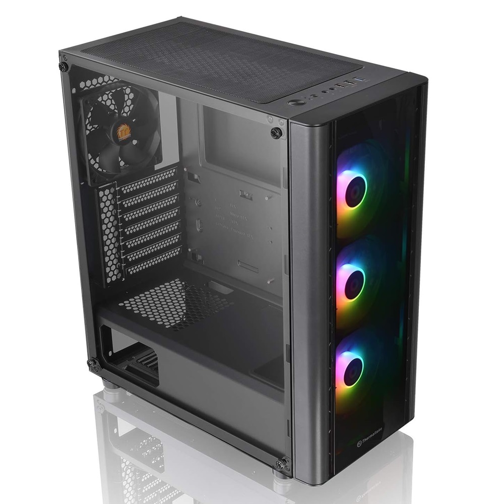 هيكل V250 Tempered Glass ARGB Mid Tower هو أحدث عضو في سلسلة Thermaltake V. يمكن التحكم في مراوح ARGB الأمامية الثلاثة المثبتة مسبقًا مقاس 120 مم 5 فولت عبر برنامج مزامنة اللوحة الأم أو مفتاح RGB الموجود أعلى منفذ الإدخال/الإخراج. تشمل الميزات البارزة الأخرى لوحة زجاجية مقسّاة مقاس 4 مم وغطاء PSU بطول كامل للحصول على أداء استثنائي بشكل عام وهو مثالي لكل من اللاعبين والمتحمسين.