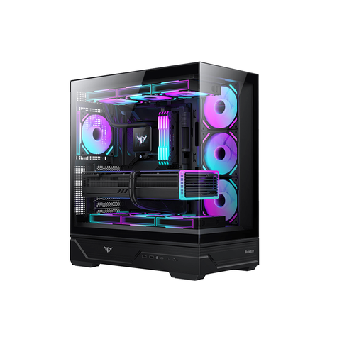 - **هيكل كمبيوتر هانتكي MVP ديستني متوسط الحجم – أسود، مزود بـ 4 مراوح**
