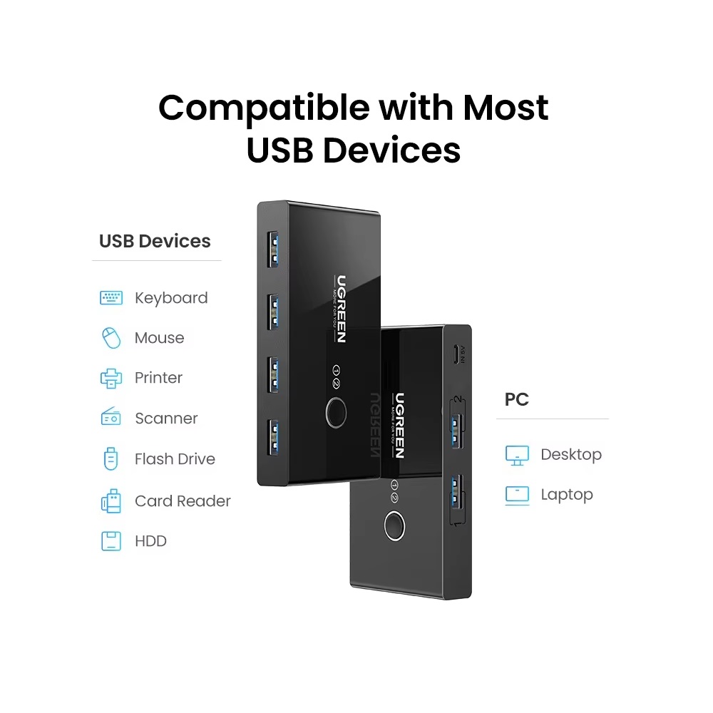 يوجرين US216 مفتاح مشاركة USB 3.0 (2 مدخل / 4 مخرج)