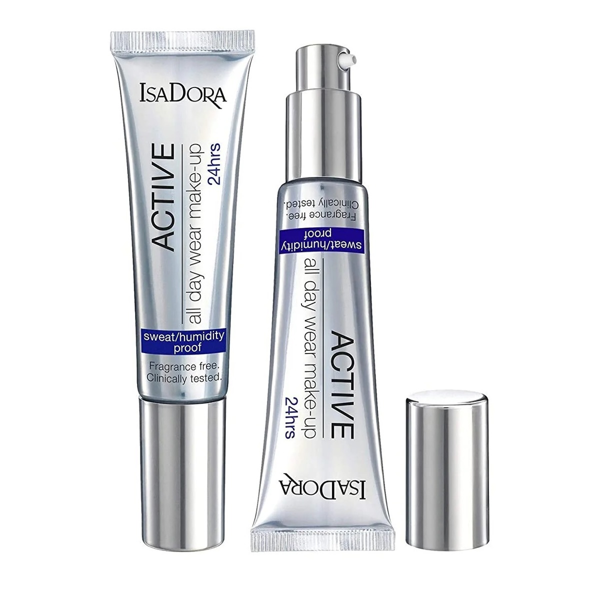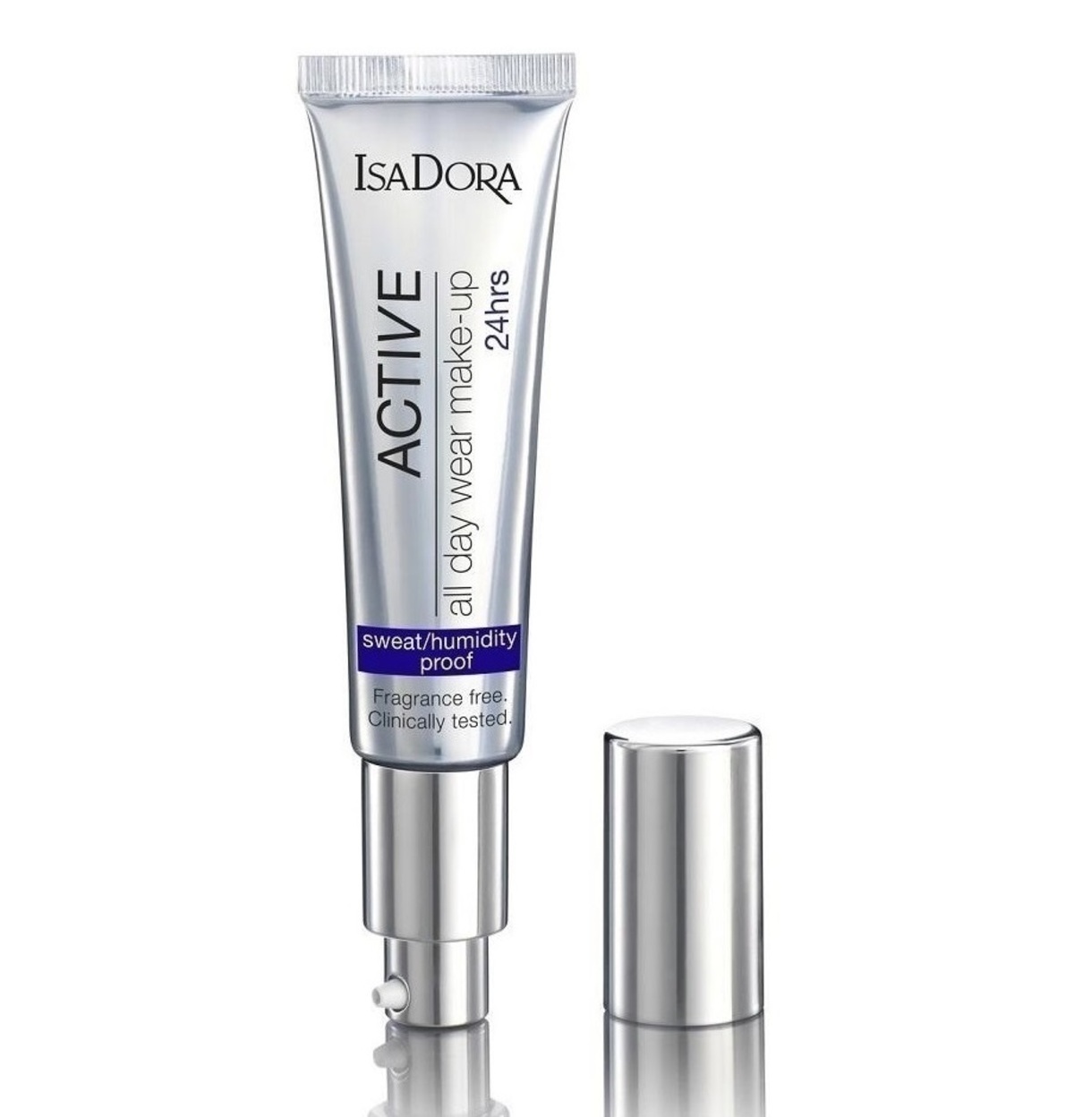 يغطي كريم الأساس Isadora Active جميع الخطوط وعدم تناسق البشرة وله مظهر غير لامع ومخملي وطبيعي على البشرة. يحتوي هذا الأساس على الجلسرين ومركب Actigym الذي يرطب البشرة ويجعلها ناعمة ومرنة. يتميز هذا الأساس بملمس خفيف ورقيق للغاية، كما أنه مقاوم للماء ويدوم حتى 24 ساعة. هذا المنتج خالي من العطور والزيوت. هذا المنتج مناسب للنساء اللواتي يبحثن عن كريم أساس ذو تغطية عالية وتأثير يدوم طويلاً. هذا الأساس مناسب للنساء مع جميع أنواع البشرة.