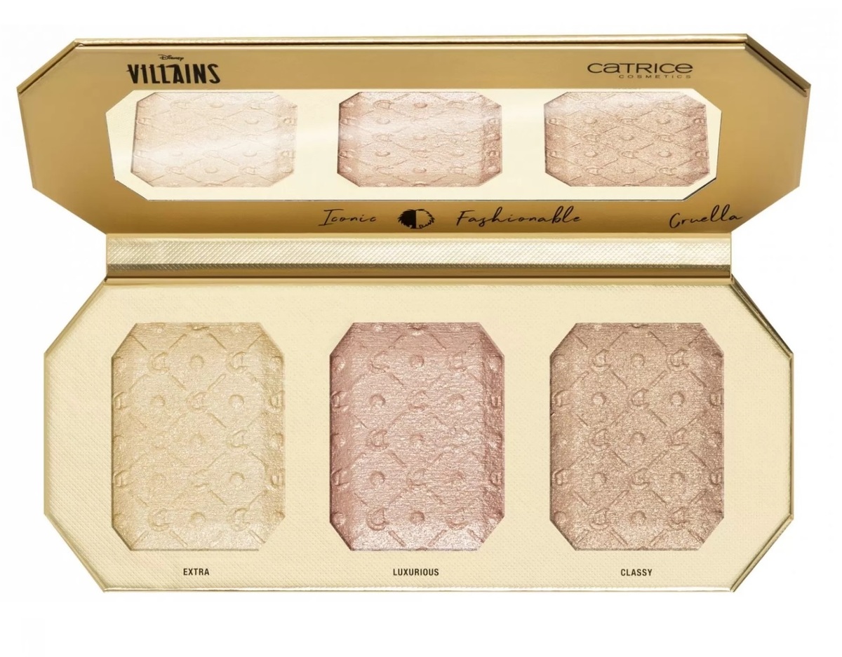 تتميز لوحة هايلايتر ديزني فيلينز كرويلا من كاتريس بالعديد من المزايا: تركيبة البودرة الكريمية لا تضمن فقط التوهج المثالي، بل تتيح لك الظلال المختلفة أيضًا الاختيار بين ثلاثة ظلال. وهذا ليس كل شيء: تم تصوير كرويلا دي فيل على العبوة - وهي لافتة للنظر تمامًا. يمكن تطبيق الملمس بشكل مثالي باستخدام فرشاة أورسولا هايلايتر من مجموعة أدوات المكياج وحقيبة إيسينس ديزني فيلينز. توفر لوحة الهايلايتر ظلالًا مختلفة لتسليط الضوء على ملامح الوجه. يمكن استخدام الظلال بشكل فردي أو مزجها معًا. من الأفضل تطبيق الملمس باستخدام فرشاة الهايلايتر. لتجنب وضع الكثير من الملمس على الوجه مرة واحدة، ربتي بالفرشاة على ظهر يدك مسبقًا. للحصول على تأثير أكثر كثافة، يمكن وضع عدة طبقات رقيقة فوق بعضها البعض.