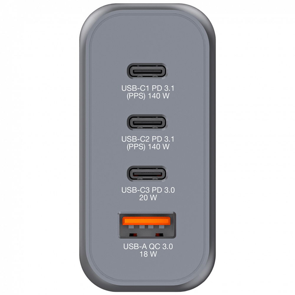- Supports charging of up to 4 devices simultaneously with a maximum total output of 140W