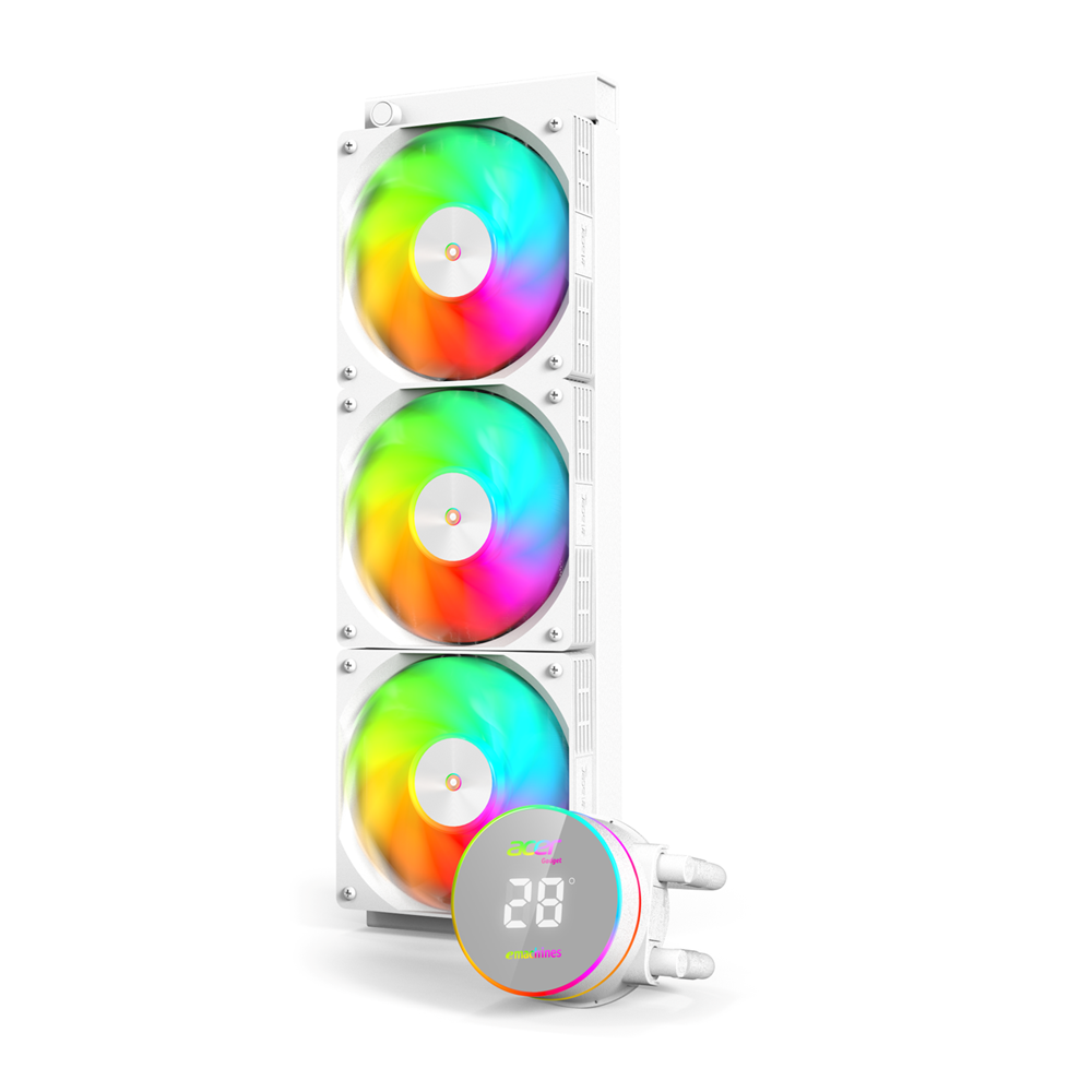 - Acer AC360 ARGB سائل لتبريد وحدة المعالجة المركزية متكامل بقياس 360 مم مع شاشة — بالأبيض