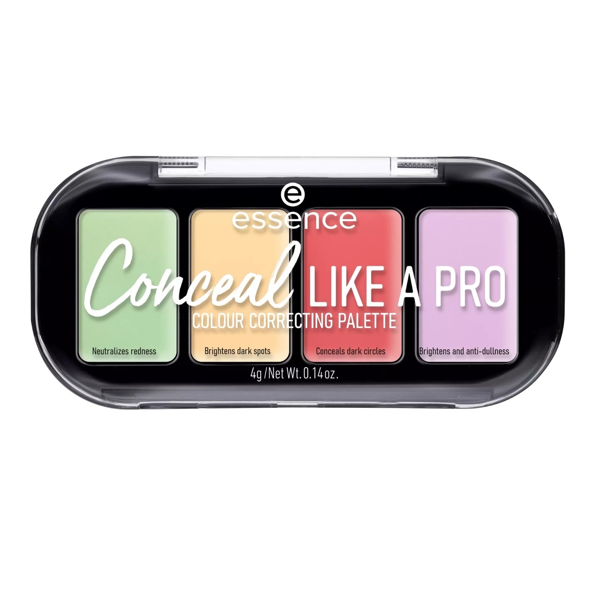 مع أربعة ألوان مصححة للألوان، تُخفي لوحة "إسنس كونسيل لايك برو" جميع الشوائب! تتميز هذه الكونسيلرات الناعمة والكريمية بتأثير فوري: الأخضر يُحيّد الاحمرار، والأصفر يُوحّد التصبغ، والأحمر يُغطي الهالات السوداء، والبنفسجي يُضفي على البشرة إشراقة! لا شيء أفضل من ذلك!