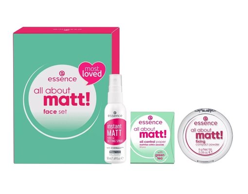 "مطفي" هو شعار مجموعة "إسنس" للوجه، التي تضم ثلاثة منتجات أساسية لبشرة متجانسة ومطفية. باستخدام ورق التحكم بالزيوت، تُربَّت مناطق البشرة الدهنية لتأثير مضاد للمعان البشرة. يمكن وضع البودرة المضغوطة الشفافة فوق كريم الأساس لإضفاء مظهر مطفي على البشرة وتثبيت المكياج، وهي مناسبة لجميع أنواع البشرة. رذاذ خفيف وشفاف يُضفي لمسة مطفية على المكياج، ويُثبِّته ويضمن ثباتًا طويل الأمد.