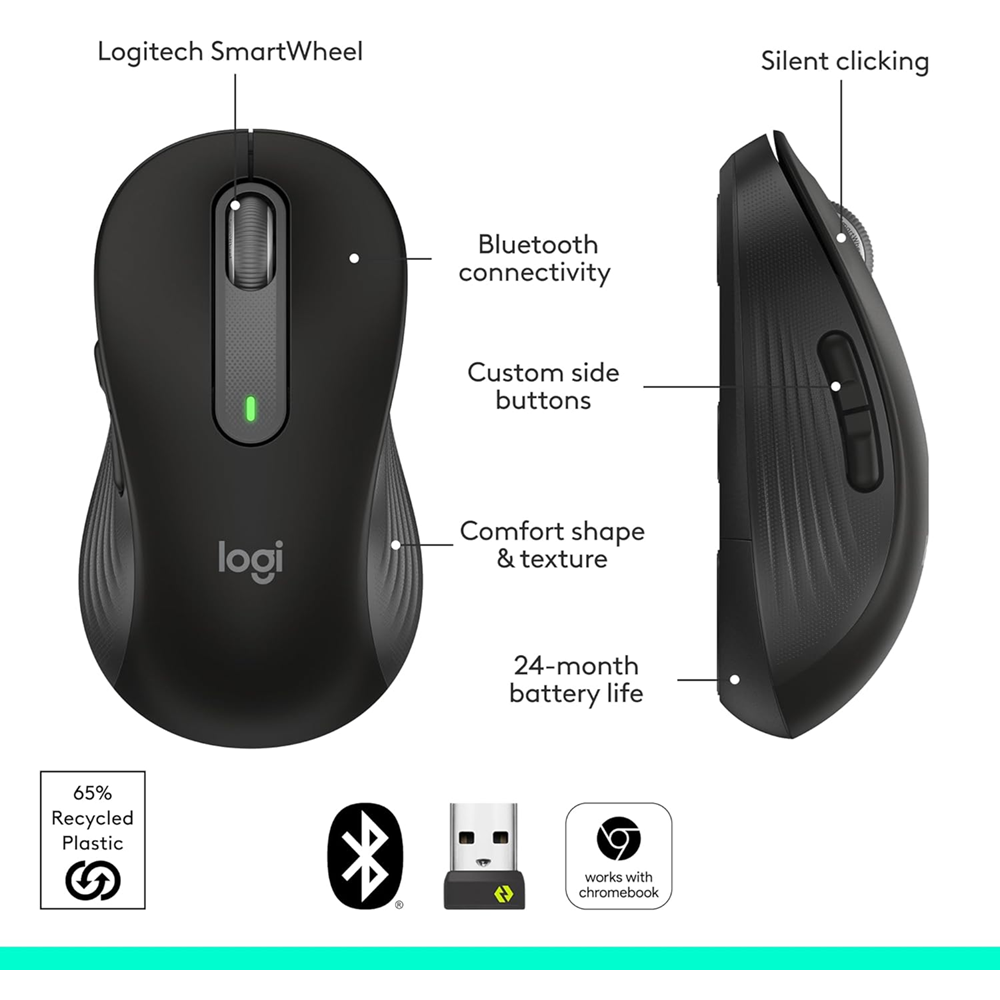 - ماوس لوجيتك سيجنيتشر إم 650 إل لاسلكي بلوتوث - تقنية النقر الصامت (Silent Touch) - لون جرافيت