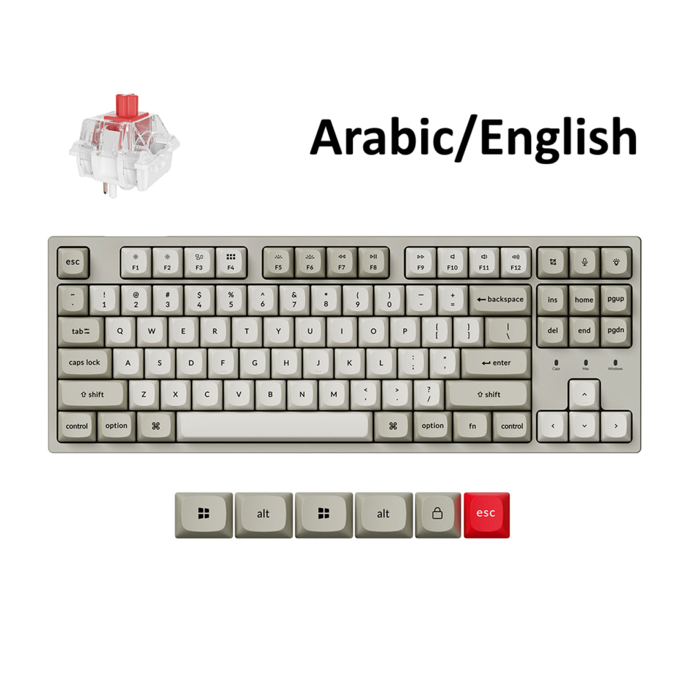 - لوحة مفاتيح ألعاب سلكية قابلة للتخصيص KeyChron C1 Pro 8K TKL ميكانيكية بمفاتيح حمراء، C1PX-M1، أبيض – عربي/إنجليزي