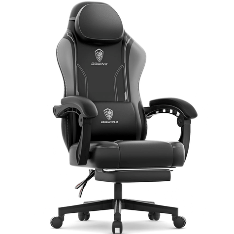 كرسي ألعاب Dowinx مزود بمسند قدم – رمادي/أسود