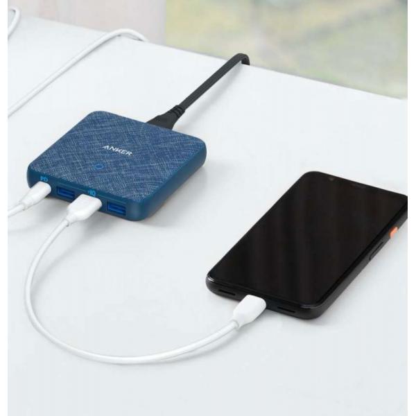 ANKER POWERPORT ATOM III SLIM 4 PORTS 65W & PIQ 3 - BLUE FABRIC