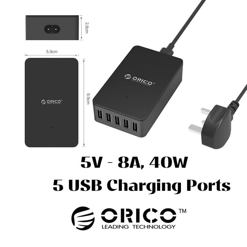 Orico CSE5U 5Port Smart Desktop USB Charger 5V 8Amp 40W 1.2m Cable