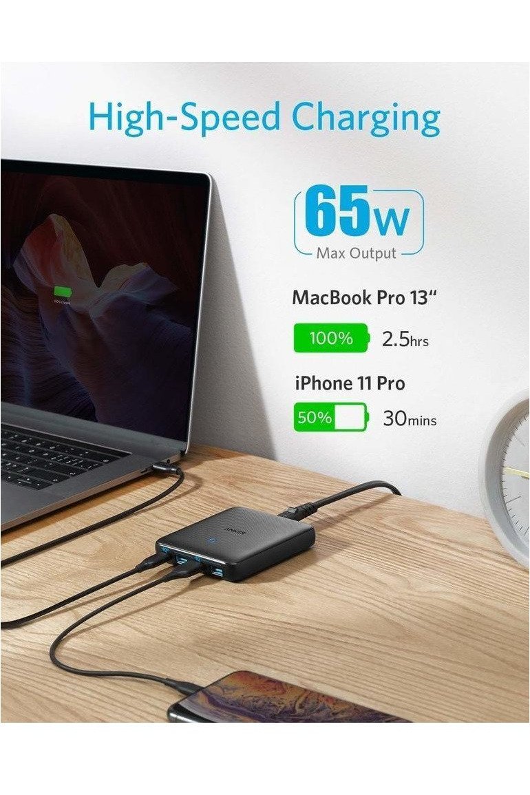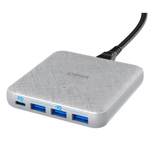Anker PowerPort Atom III 65W Desktop Charger 4 Ports – Gray Fabric