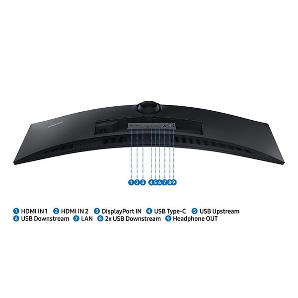 DisplayHDR 400 Dual QHD Display Built-in Speakers Built-in KVM Switch Color Support: Max 1.07B sRGB Coverage: 125%(Typ.) QLED technology for captivating colours 32:9 Super Ultra-Wide 1800R Curved Screen USB Type-C port (90W Charging and Display) Refresh Rate: 60Hz HDMI (DP : Max 120Hz) Ethernet (LAN Port) Picture-By-Picture Dual HDMI Ports Wall Mount