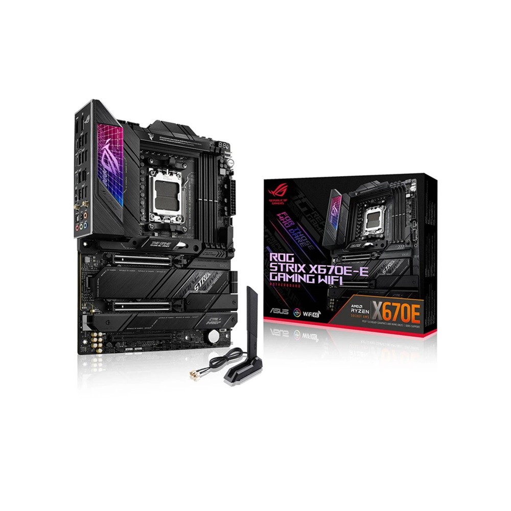 The ROG Strix X670E-E Gaming WiFi is perched at the top of the series, packing robust power delivery and exclusive ROG overclocking tools to max out the stats of AMD Ryzen™ 7000 Series processors. PCIe 5.0 support extends to the furthest reaches of chipset capabilities, and an additional beefy heatsink is prepped to keep even the fastest M.2 drives chilled. With leading performance, the latest connectivity, and DIY-friendly features that span from hardware installation to system setup, this Strix beast grips AM5 and effortlessly soars to victory.