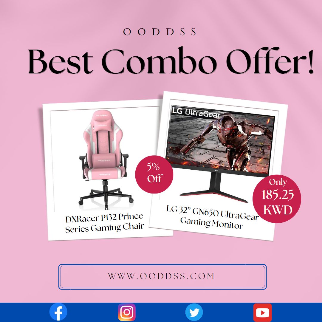- DXRacer P132 Prince Series Gaming Chair + LG 32” GN650 UltraGear Gaming Monitor