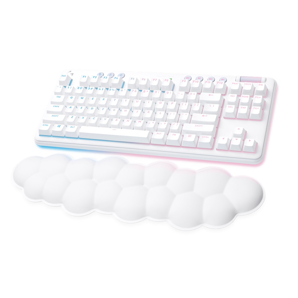 From the Aurora Collection, G715 is a gaming-grade LIGHTSPEED wireless and Bluetooth® keyboard designed for comfort with included cloud-soft palm rest. Fully equipped with RGB lighting and your choice of GX mechanical switches. Comes in White Mist. Colorway accessories sold separately.