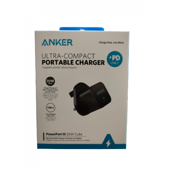 Anker PowerPort III 20W Cube -Black 20W PD Wall Charger USB C Plug Compact and Portable MultiProtect safety system Feather-light and compact design PowerIQ 3.0 technology