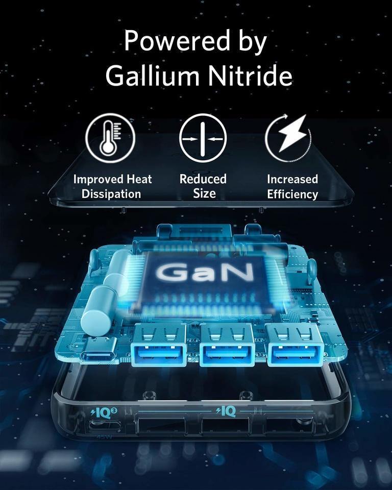 Anker PowerPort Atom III Slim (Four Ports) High-Speed USB-C Charging: Charge USB-C notebooks including Dell XPS 13 and MacBook Air 2018 at full speed via a 45W USB-C port. Charge 4 Devices Simultaneously: A PowerIQ 3.0 enabled USB-C port pumps out a max 45W output to charge virtually any USB-C device at top speed, while 3 USB ports share a total of 20W to provide optimized charging for mobile devices. Ultra-Slim: By swapping out silicon for gallium nitride (GaN), we’ve been able to create one of our slimmest USB-C chargers—without compromising power. Universal Compatibility: Anker’s signature PowerIQ 3.0 technology provides high-speed charging to virtually any mobile device. What You Get: PowerPort Atom III Slim (Four Ports) USB-C Charger (cable not included), 5 ft detachable power cord, adhesive strip, welcome guide, our worry-free 18-month warranty, and friendly customer service.