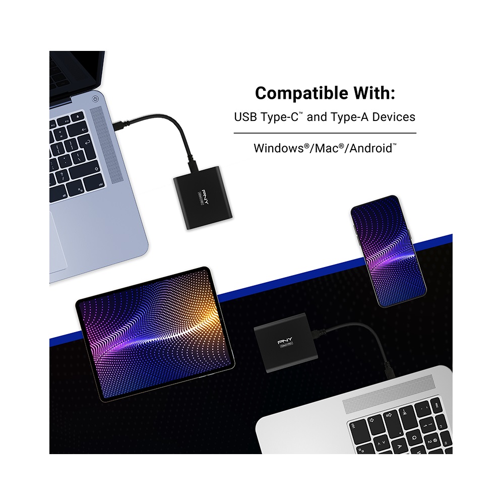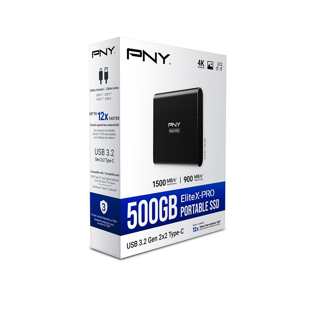 - PNY 500GB EliteX PRO USB 3.2 Gen 2×2 Type-C Portable SSD, 1500 MB/s