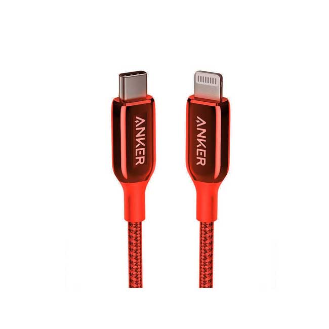 Anker PowerLine + III USB-C to Lightning (1.8m/6ft) – Red PowerLine+ III USB-C to Lightning Cable The Hard-Wearing, High-Speed Compatible Lightning Cable Strong and Durable An optimized internal structure means the latest generation of PowerLine has become even slimmer than ever before—without sacrificing strength. Combined with the 35,000-bend lifespan, PowerLine+ III is designed to withstand every twist, tug, and tangle. Supports High-Speed Charging Charge iPhone 8 or later to 50% in just 30 minutes when paired with an 18W or higher USB-C Power Delivery charger. (Charger not included) Universal Compatibility MFi certified to work flawlessly with any device that uses a Lightning connector. A Cable for Life We’re so confident in PowerLine+ III, we are offering a hassle-free replacement for all quality issues. Not for half a year, not for 18 months, but for an entire lifetime. It’s the only cable you will ever need to buy. Curved Stainless Steel Design PowerLine III’s curved, stainless-steel edges are designed to perfectly match the exterior of high-end phones and laptops. Compatibility Power Delivery Compatible iOS Devices: iPhone 8, 8 Plus, X, XS, XR, XS Max, iPad Pro (10.5-inch), iPad Pro(12.9-inch) 1st generation, iPad Pro (12.9-inch) 2nd generation, AirPods, AirPods with Wireless Charging Case and AirPods Pro