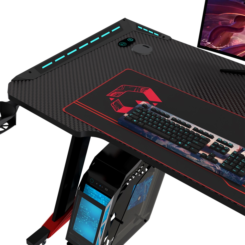 GAMEON Raptor-Il gaming desk is covered ith tough and durable carbon fiber texture surface, spaciuos enough to hold all those accessories you need while gaming.