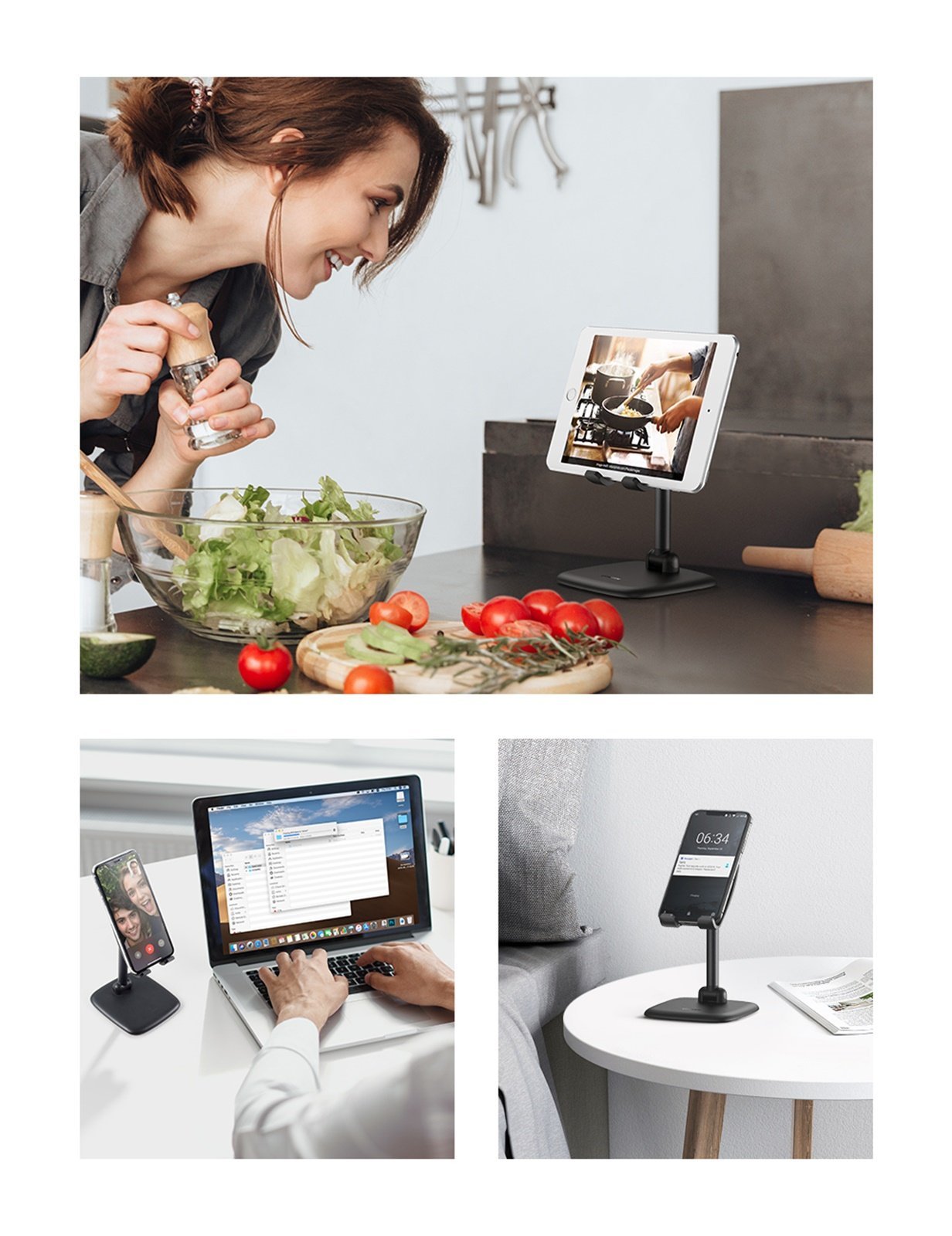 UGREEN Cell Phone Holder can be easily adjusted from 7 inch to 9.8 inch, providing you with a more comfortable viewing angle and helps reduce neck fatigue. UGREEN Desktop Phone Holder can provide a safe and secure stand for your smartphones in the safe portrait and landscape position. Now it's time to give your hands a breather, enjoy video watching, reading, face calling or simply surfing the web with this phone holder.