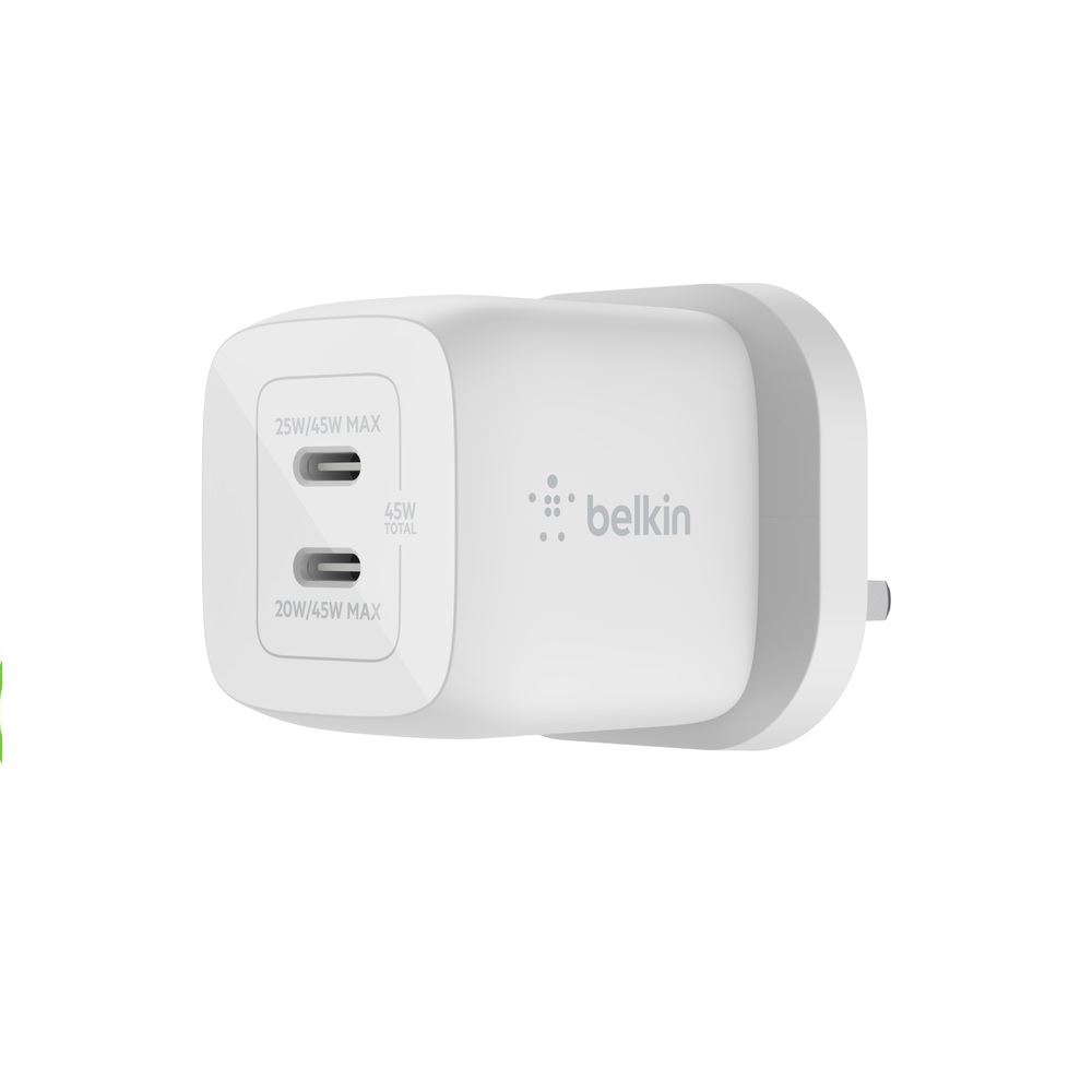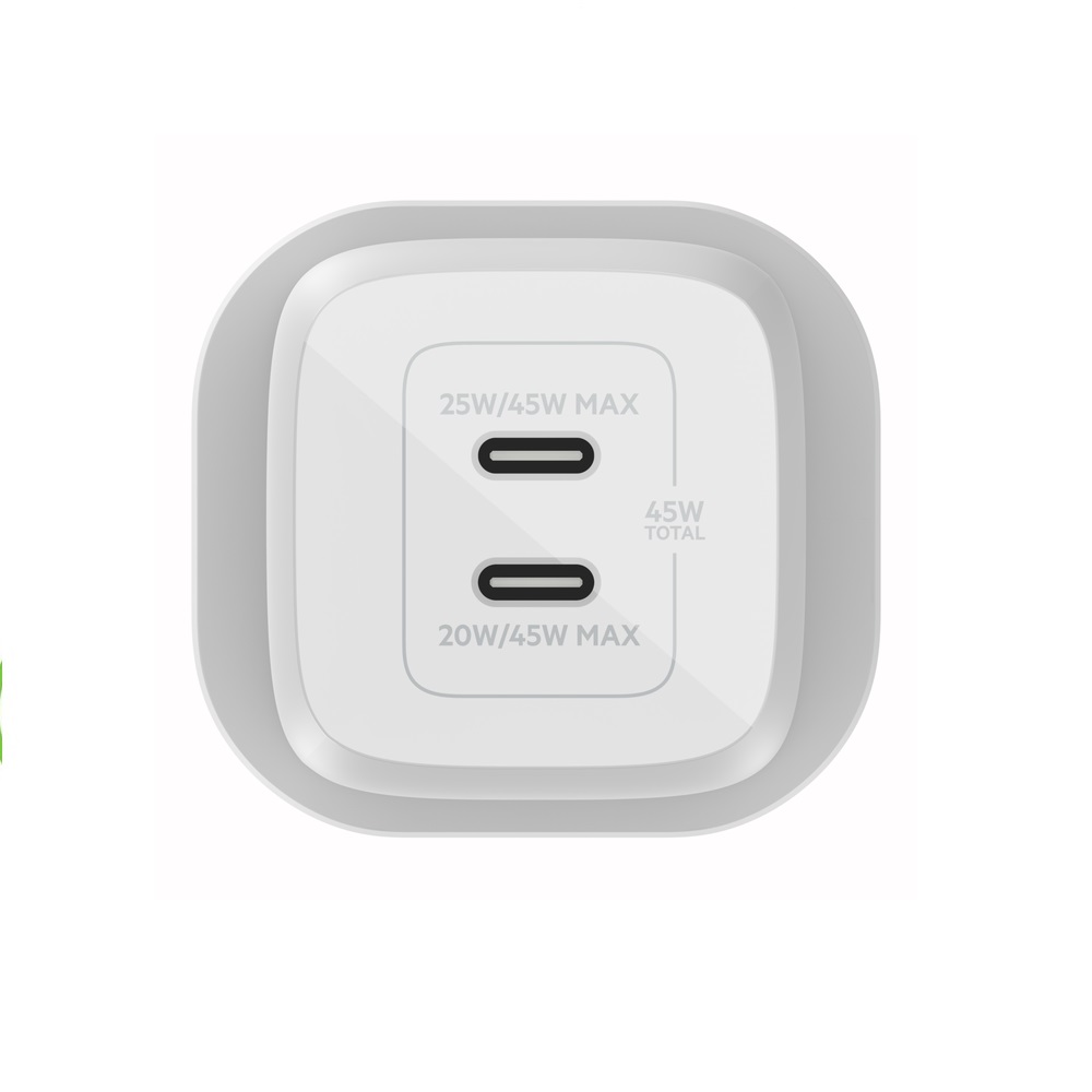 الطريقة المثالية لشحن أجهزتك أثناء السفر. يتميز شاحن الحائط المزدوج USB-C GaN مع PPS بأنه صغير الحجم وخفيف الوزن، مما يجعله مثاليًا للسفر.