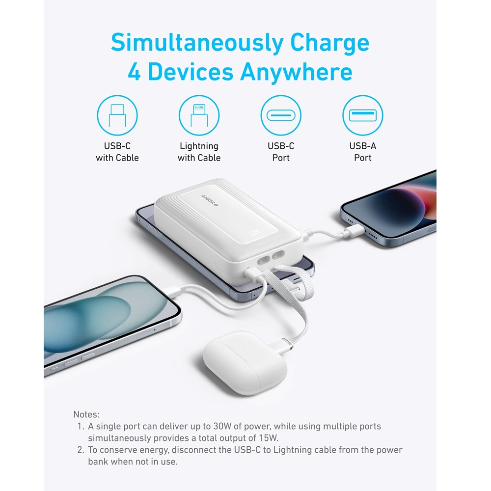 • Anker A1681 Zolo Power Bank 20000mAh 30W with Built-in USB-C and Lightning Cables