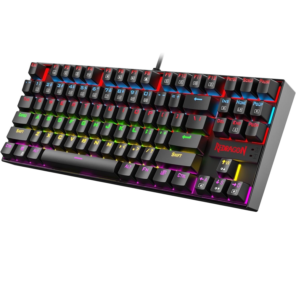 Tenkeyless Compact Mechanical Gaming Keyboard Redragon K552 Tkl Small Compact With Dust Proof Mechanical Switches Cherry Mx Red Equivalent Linear Switches Quiet Click Sound Fast Action With Minimal Resistance Without A Tactile Bump Feel.