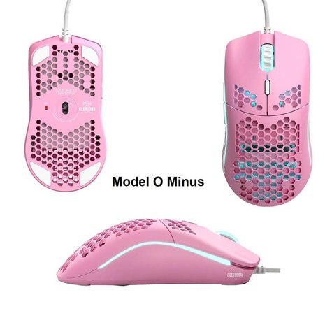 Software Optional The Model O and O- is a driver-free mouse that is ready to go right out of the box (plug and play). Settings such as LED effects and DPI can be adjusted directly on the mouse, without any software. For more advanced options, our free software allows you to edit and configure the mouse to your liking. Technical Specifications – Sensor: Pixart® PMW-3360 Sensor – Switch Type (Main): Omron® Mechanical Rated For 20 Million Clicks – Number of Buttons: 6 – Max Tracking Speed: 250+ IPS – Weight: 58grams (Model O-) and 67 grams (Model O)* – Acceleration: 50G – Max DPI: 12,000 – Polling Rate: 1000hz (1ms) – Lift off Distance: ~2.0mm – Cable Type: Ascended Cord (ultra-flexible) – Connector: USB 2.0 – Cable Length: 2 m / 6.5 ft – Color: Prism Pink – Mouse Feet Type: G-Skates Premium Mouse Feet – Mouse Feet Thickness: 0.81mm – Dedicated DPI indicator?: Yes, on bottom of mouse – Default DPI Settings: 400 (yellow), 800 (blue), 1600 (red), 3200 (green) – Remappable DPI: Yes (requires software) – LED Color: 16.8 million color RGB (8 effects) – LED adjustable without software?: Yes – LED can be disabled?: Yes – OS: Windows, Mac, and Linux. USB port required – Software: Optional (for more settings and options) – Software Compatibility: Windows (7 or newer) |