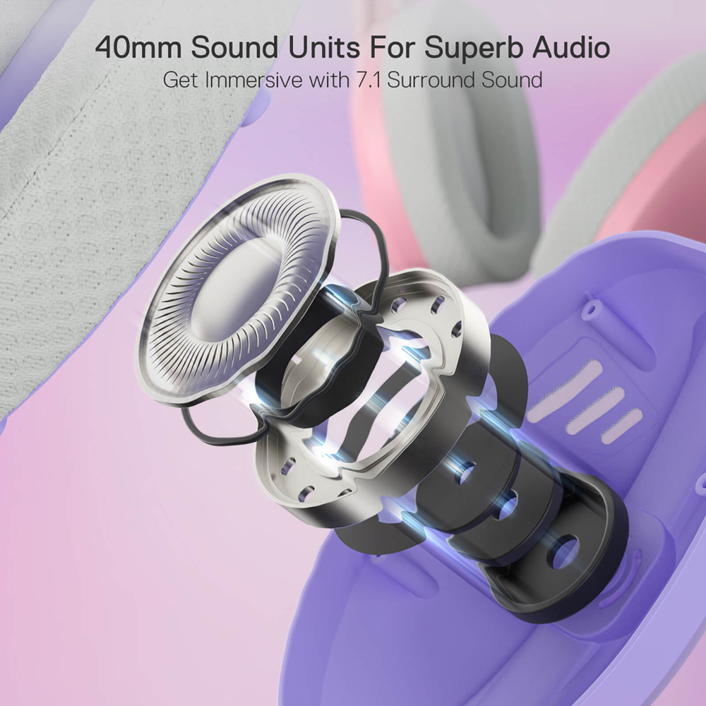 Enjoy the real clear and lossless sound quality with 7.1 Surround-Sound technology, creating a field of immersion wherever in the game field, listening to a live concert, or in a chat room. The 40mm drivers offer a wider frequency range, richer sound fields, higher definition, and extreme fidelity sound.